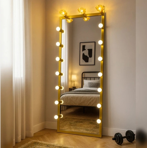 ایینه مدرن چراغدار ایستاده فلزی مناسب اتاق خواب و دکور E154