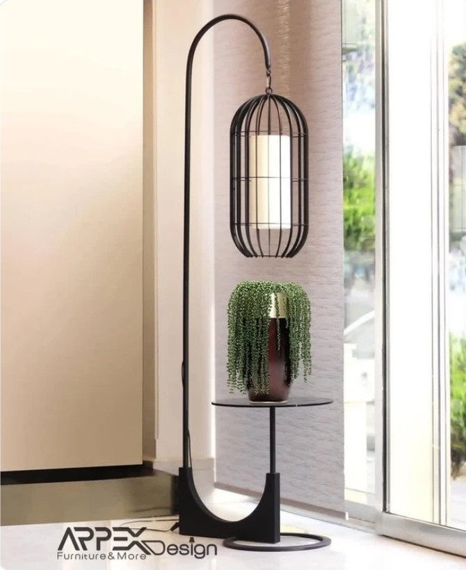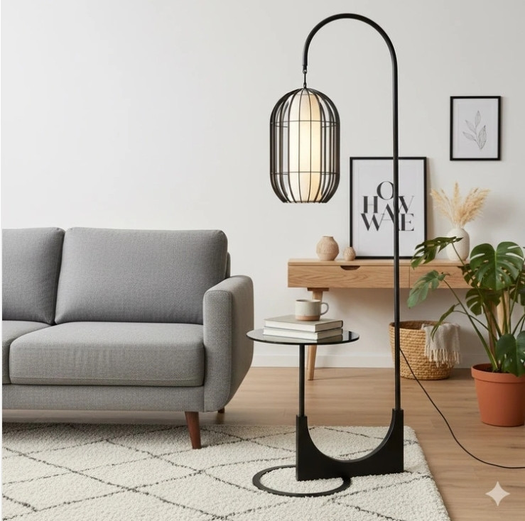 این آباژور ایستاده مدرن، فراتر از یک المان نورپردازی است؛ یک راهحل هوشمندانه برای فضاهای کوچک و چیدمانهای مدرن است. ترکیب شیک پایه مشکی مات، محفظه چراغ قفسی و میز عسلی شیشهای، آن را به یک اثر هنری کاربردی تبدیل کرده اسویژگیهای این آباژور خاص:
