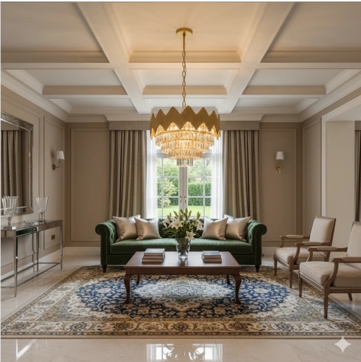 فضاهای نئوکلاسیک: این لوستر بهخوبی با مبلمان چوبی و پارچههای مخملی ترکیب میشود