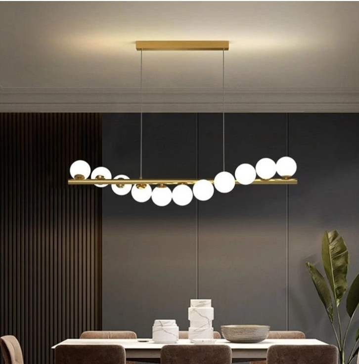 طراحی چشمنواز و مدرن، این لوستر شاخهای انتخابی بینظیر برای فضاهای لوکس و مینیمال است. بدنهی فلزی با روکش طلایی براق در ترکیب با حبابهای کروی از جنس شیشهی مات، جلوهای گرم و هنری به فضای شما میبخشد. چینش نامتقارن حبابها به سبک مدرن، حس پویایی و خلاقیت را القا میکند و در عین حال، نور یکنواخت و ملایمی را در محیط پخش مینماید