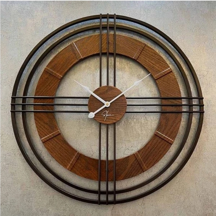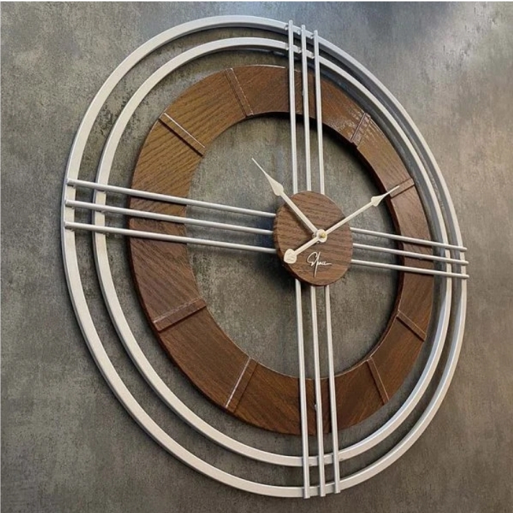 ساعت دیواری مدرن فلزی و چوبی تلفیقی H162