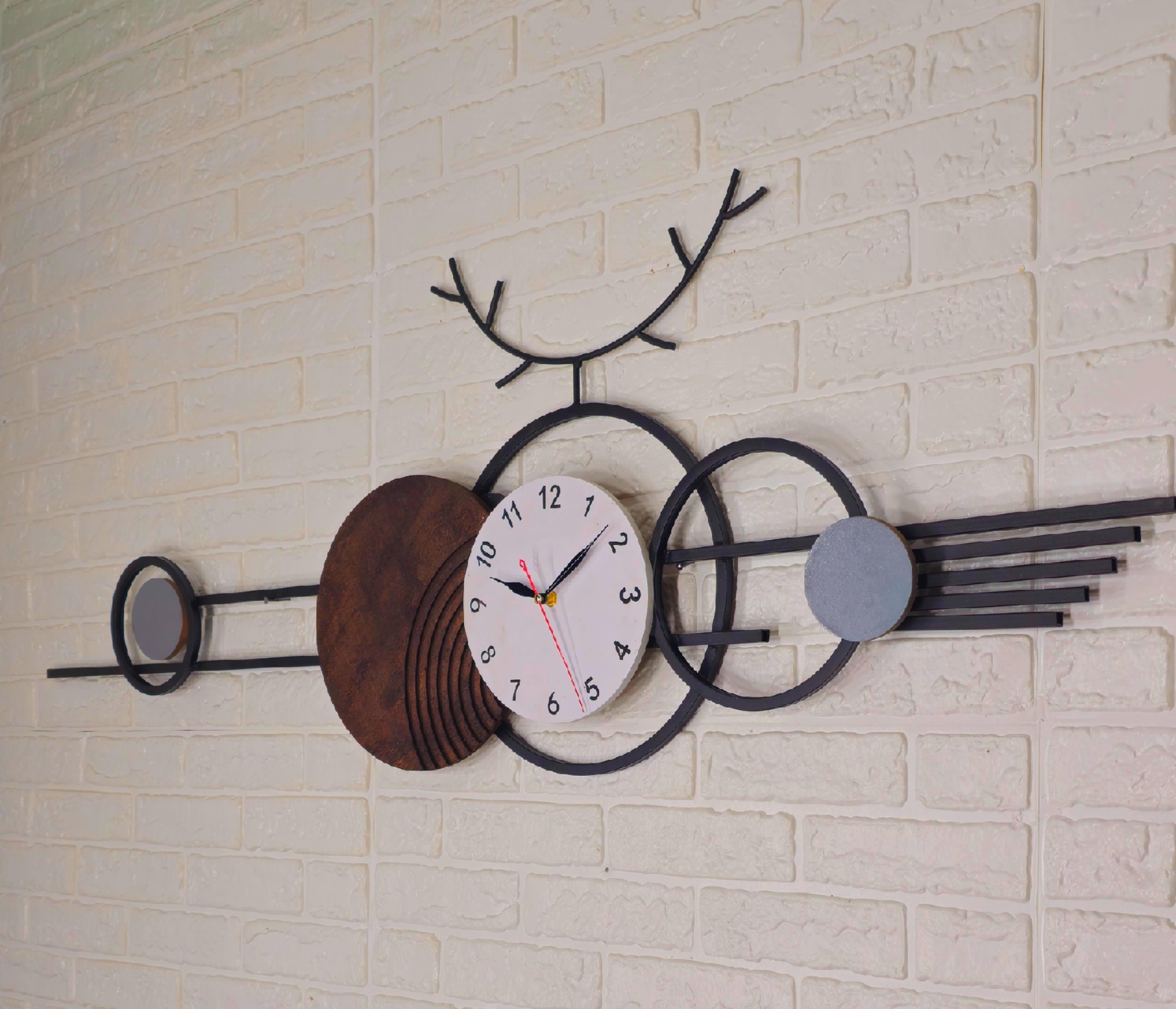 ساعت دیواری مدرن تلفیقی چوب و فلز H530