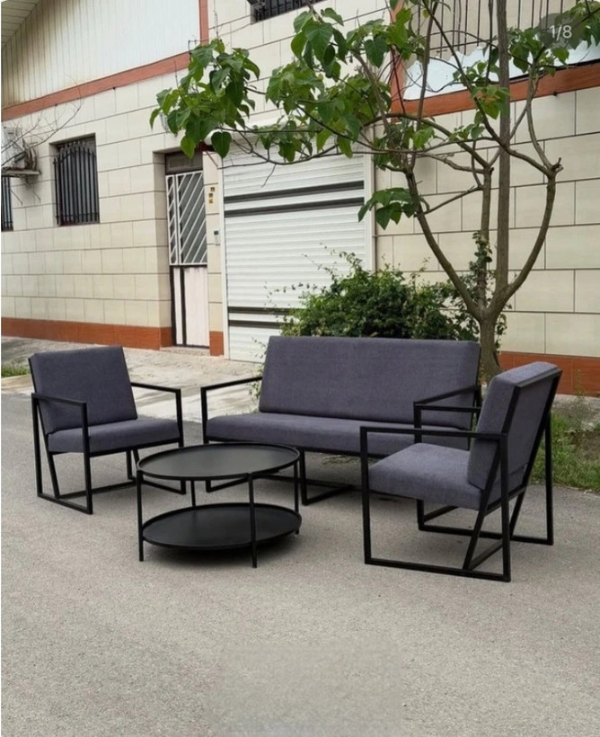 فوم اسفنجی ضخامت ۱۰ سانتی متر ۲ عدد مبل تکی ، ۱ عدد مبل دو نفره ، ۱ عدد جلو مبلی روکش از جنس پارچه مازراتی ترک اصل ،کاور زیپی قابل جداشدن و شستشو جنس جلو مبلی تمام فلز می باشد تنوع رنگ مربوط به پارچه ها می باشد(