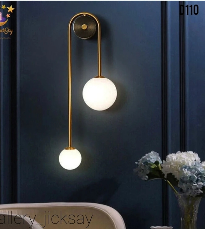 آویز دیواری مدل D110، ترکیبی بینقص از ظرافت هنر مدرن و زیبایی کلاسیک است. این محصول با طراحی آویزان و نامتقارن، که دو گوی شیشهای مات را روی یک پایه فلزی برنجی/طلایی براق معلق کرده است، بلافاصله جلوهای لوکس، آرام و صمیمی به فضای شما میبخشد. این چراغ دیواری برای ایجاد نورپردازی لایهای و تأکیدی در دکوراسیونهای شیک و امروزی یک انتخاب بیبدیل است.